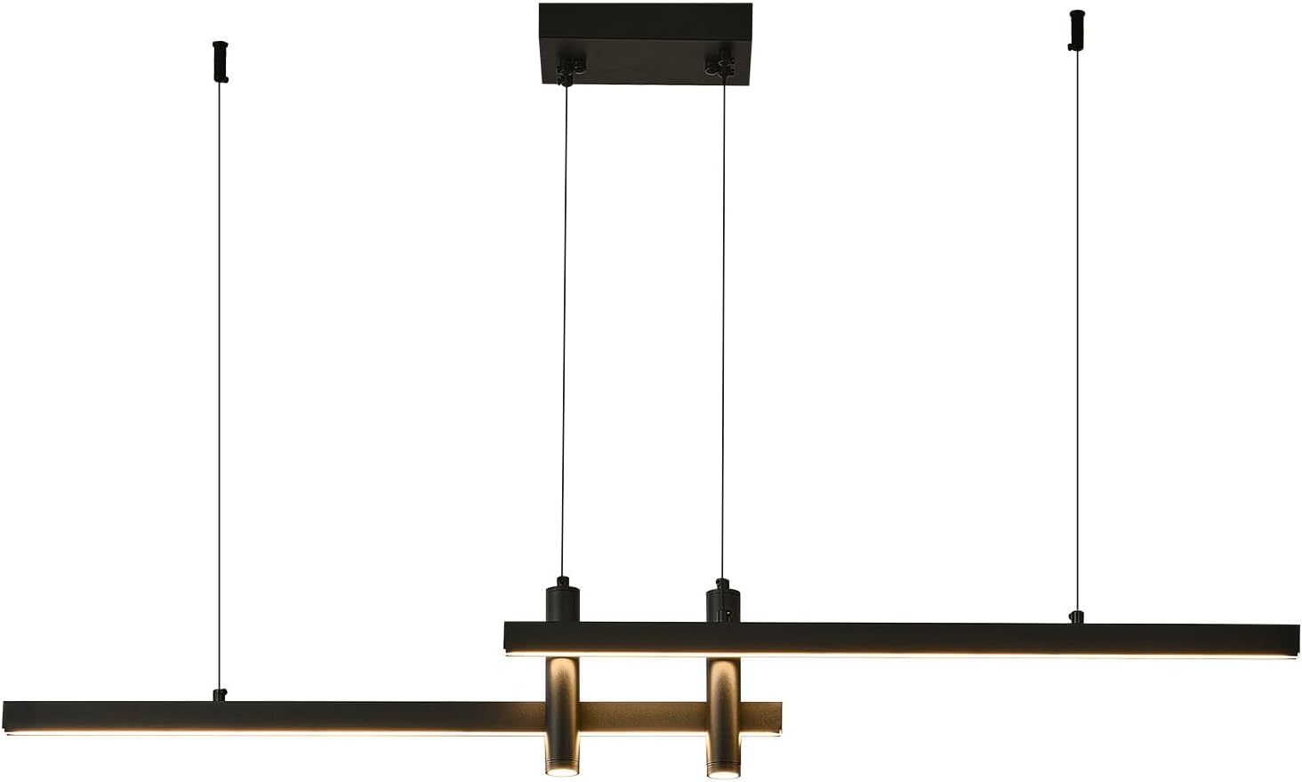 The modern linear chandelier with 98 inch adjustable cord, which is enough for you to adjust the height as you want And it can be adjusted into four different shaped Hanging Light, you can freely change.