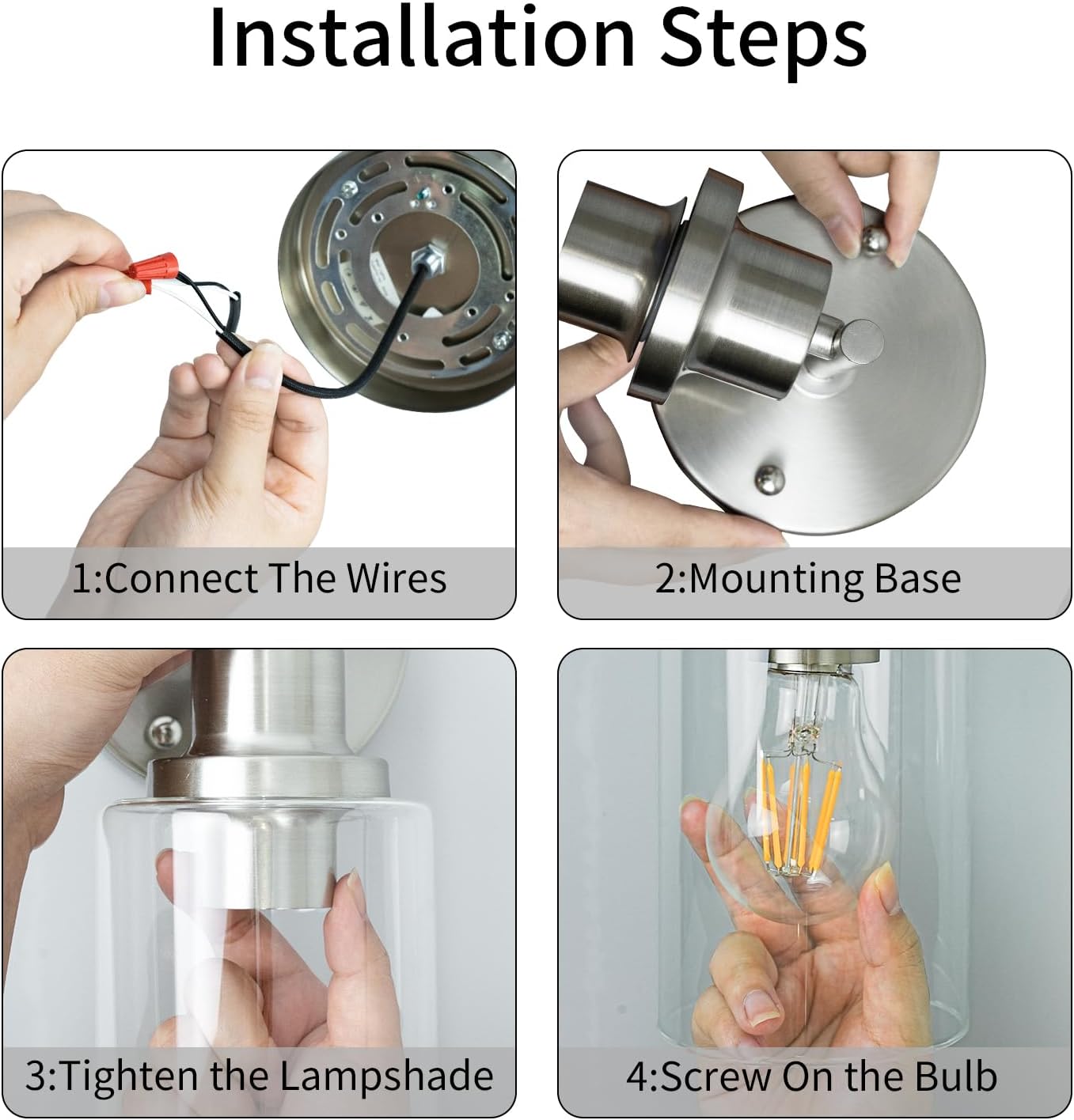 The brushed nickel wall sconce is built with a sturdy steel base and a simple glass shade, ensuring it's made to last. The lampshade is made of highly transparent glass, allowing light to fully illuminate every corner. The steel base and stand are rust-resistant and durable, providing stable support and preventing loosening or deformation. This outstanding wall light combines durability with modern aesthetics, making it an eye-catching addition to any room.